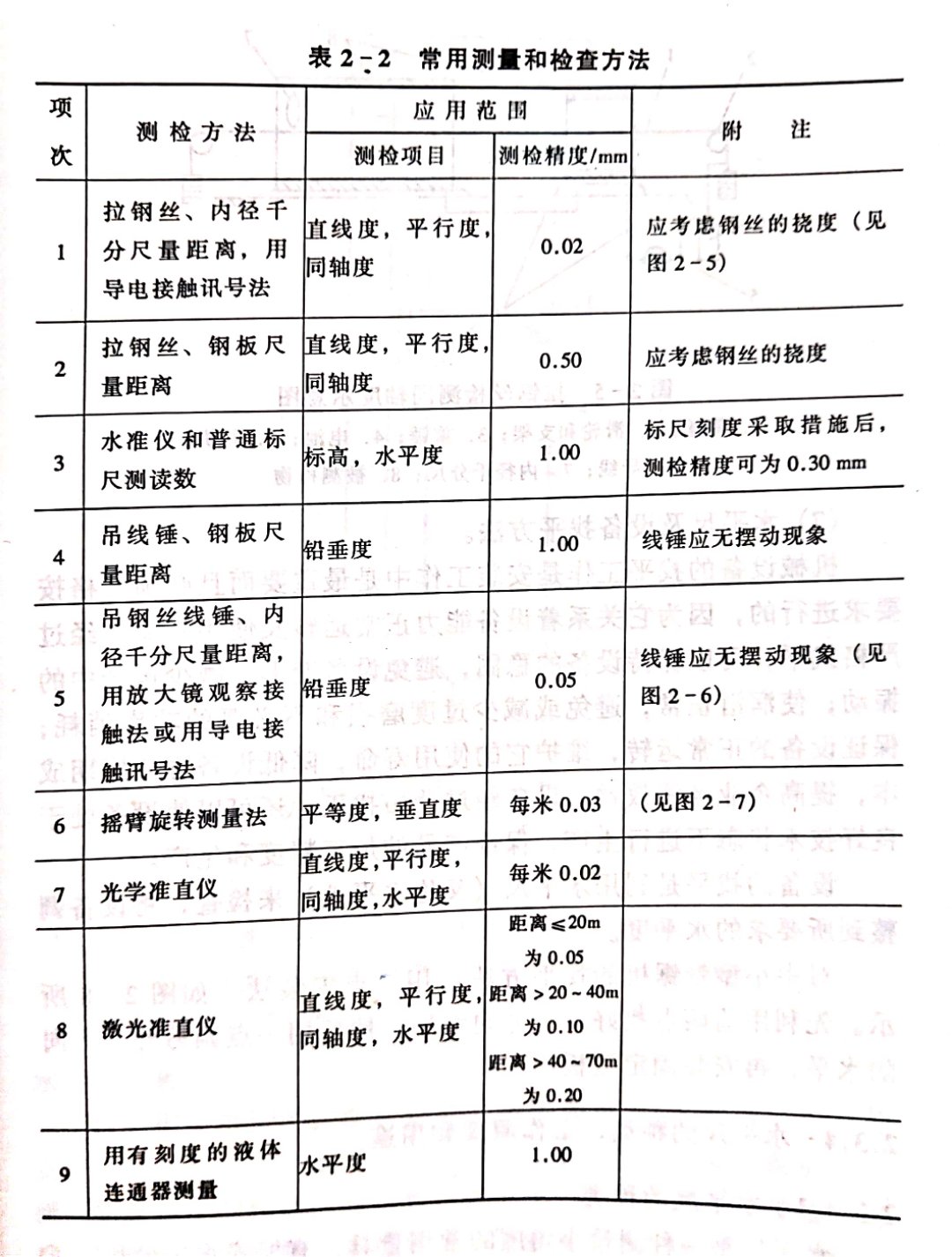 常用的測量和檢查方法及其應(yīng)用范圍列入表2-2