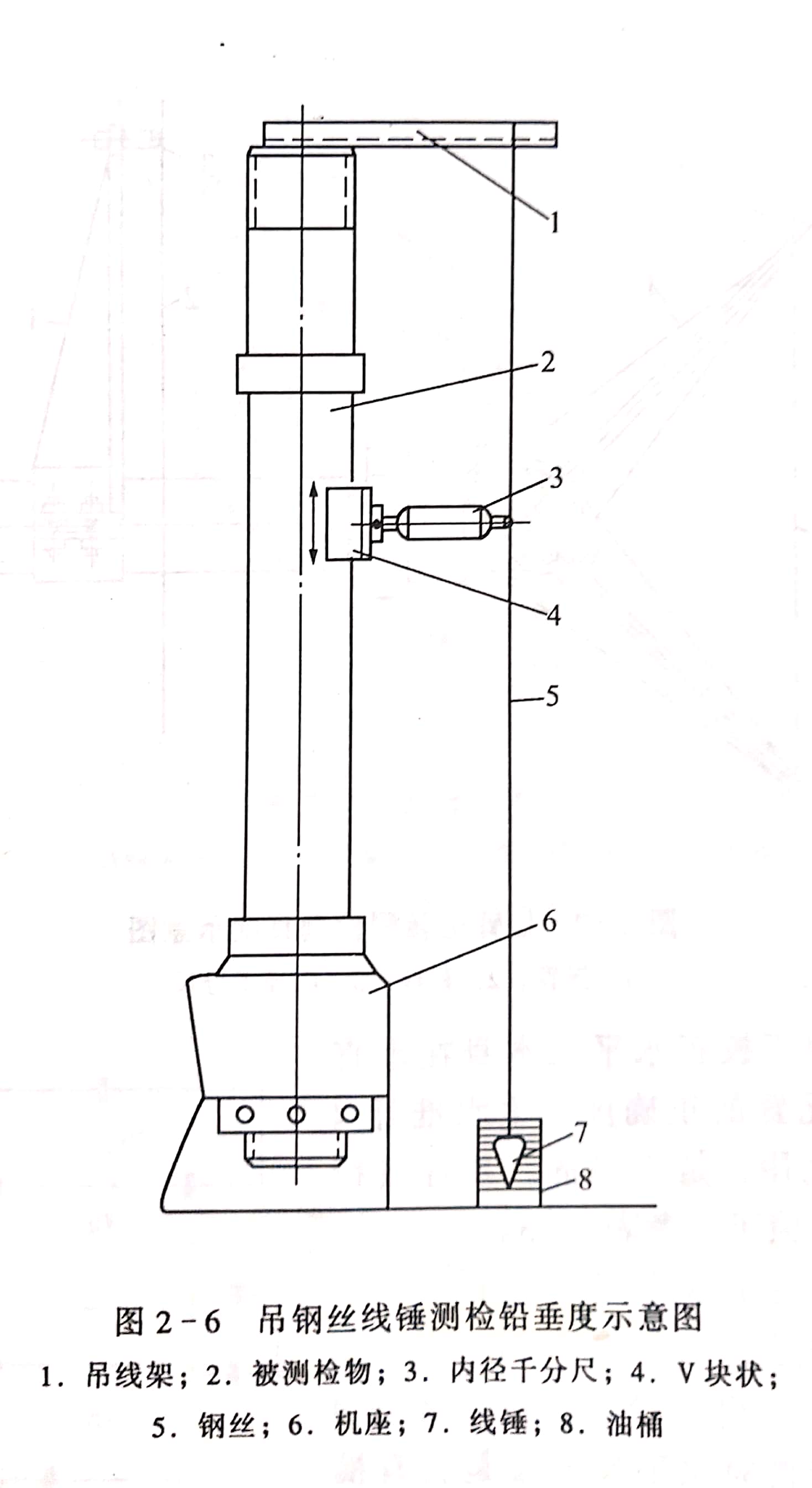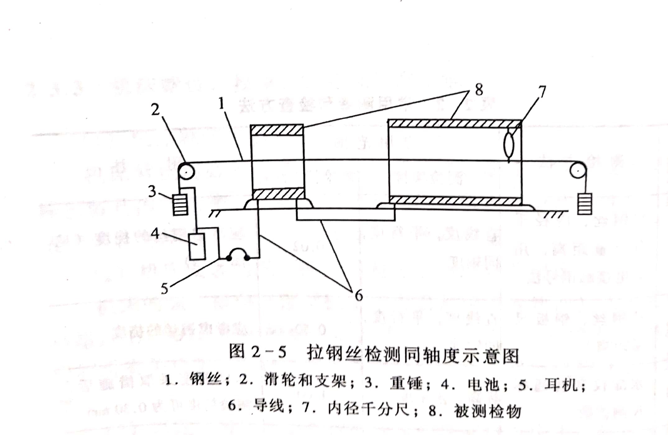拉鋼絲測檢直線度、平行度時,應(yīng)根據(jù)測檢精度要求和拉設(shè)跨距選用直徑為0.2~0.75mm的整根鋼絲,其拉緊力一般為鋼絲破斷拉力的50%~80%。