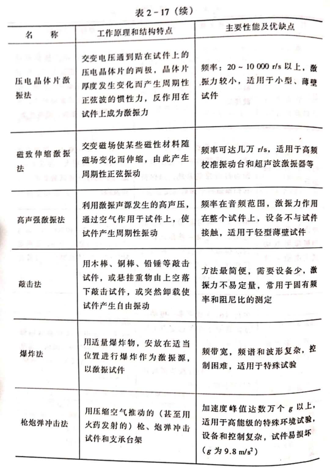 激振設(shè)備種類較多(見表2-17),這里僅對(duì)電動(dòng)式激振器、電磁式激振器和電液式激振器進(jìn)行簡(jiǎn)單介紹。